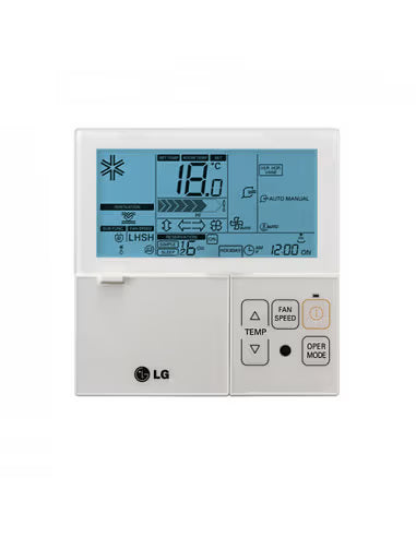 Il comando a filo LG PREMTB001 consente di gestire facilmente il sistema di climatizzazione. Con un ampio display LCD retroilluminato in azzurro e un design elegante, permette la programmazione settimanale e la rilevazione della temperatura ambiente in tempo reale.